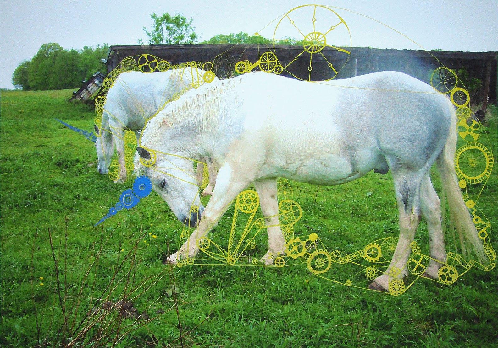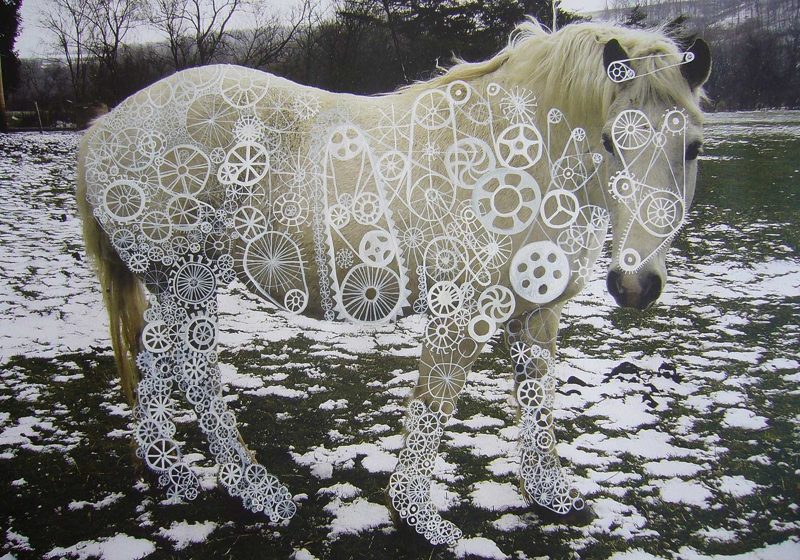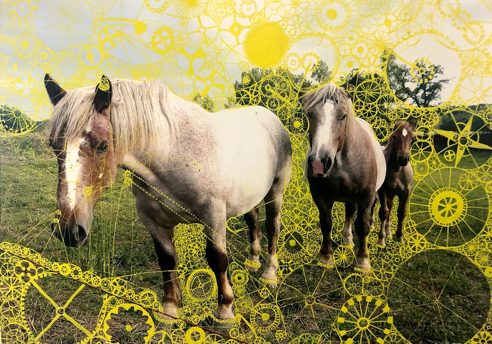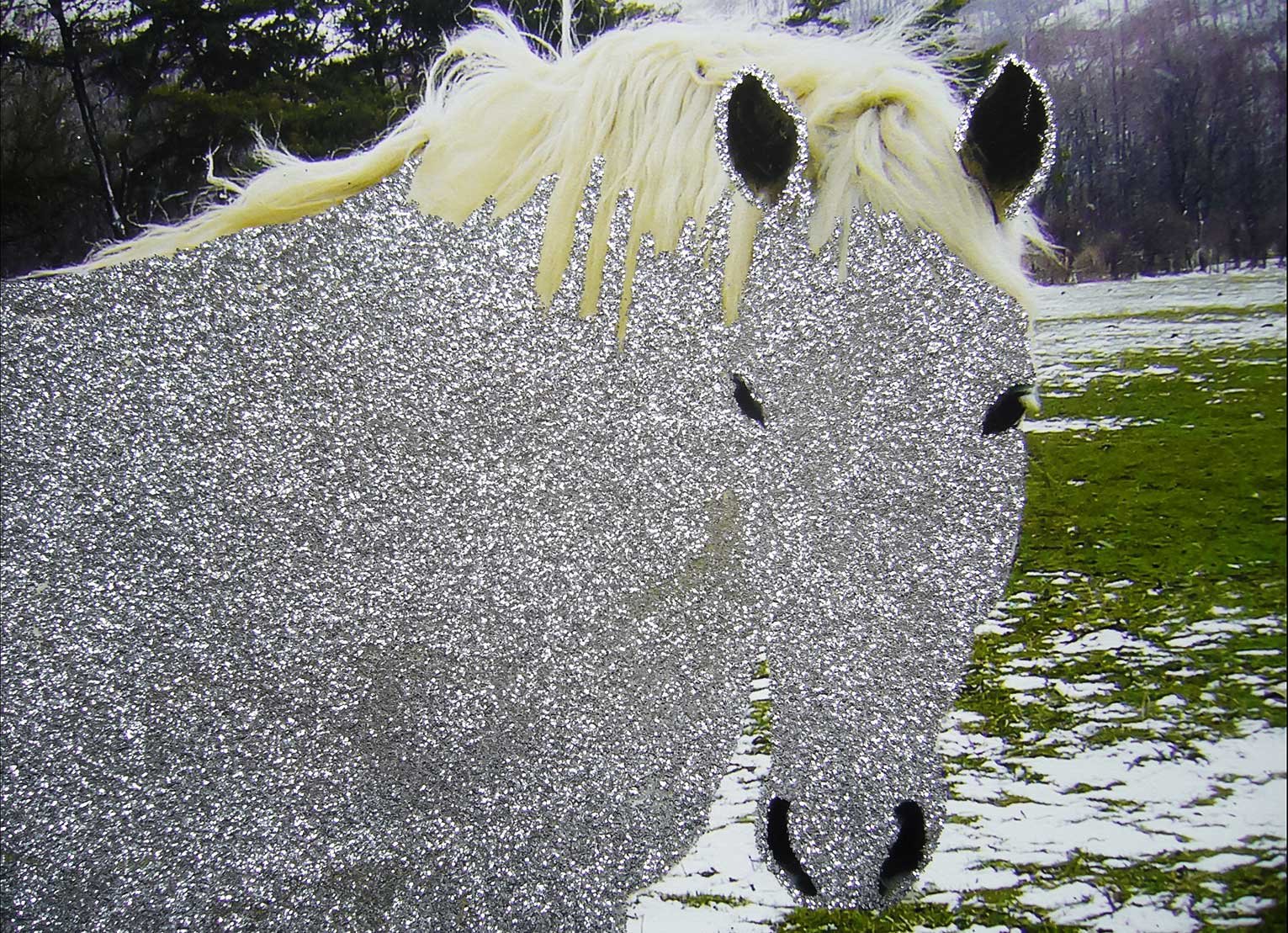 Gouache, ink, glitter on digital prints. 30” x 24”. 2004-2006