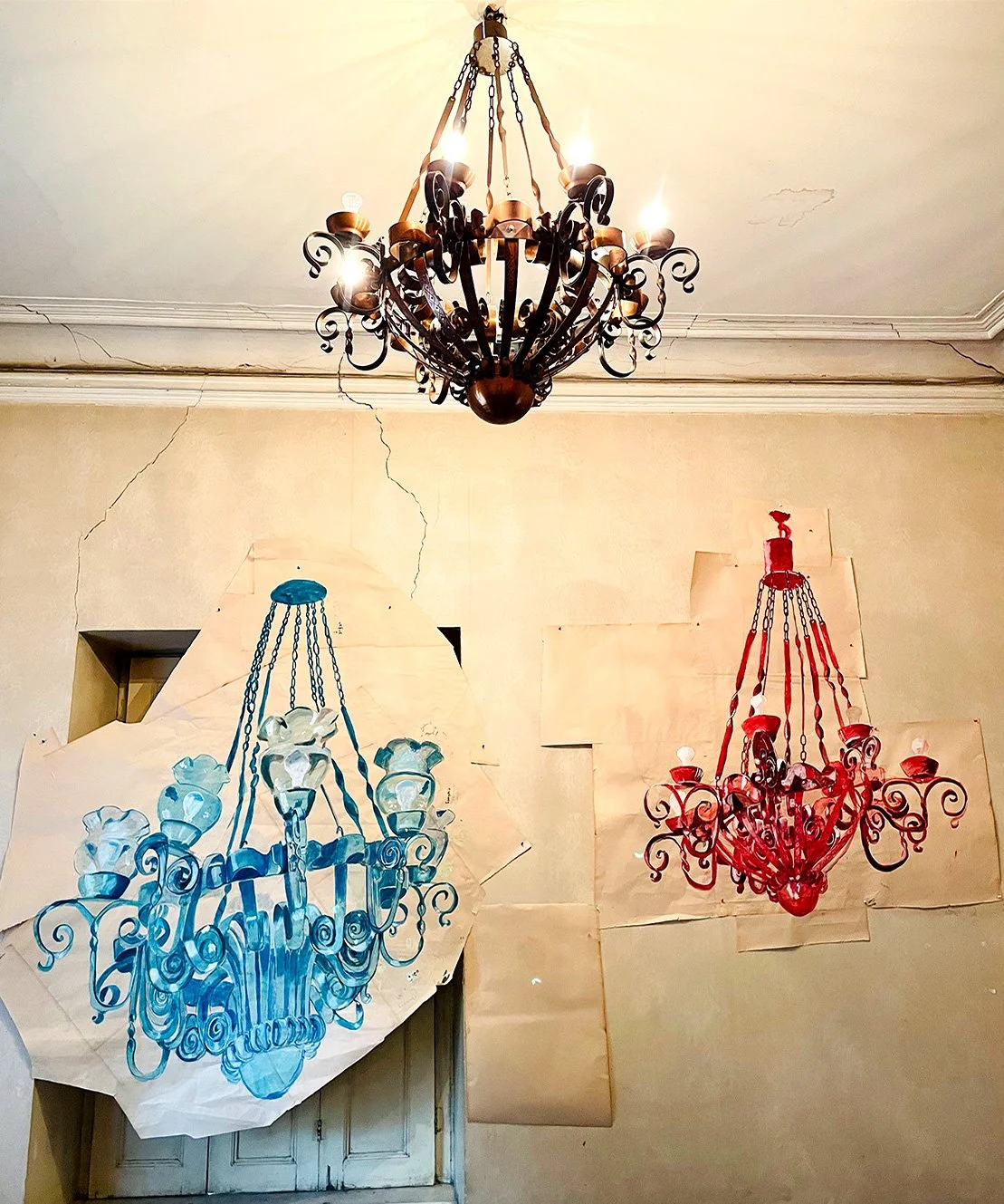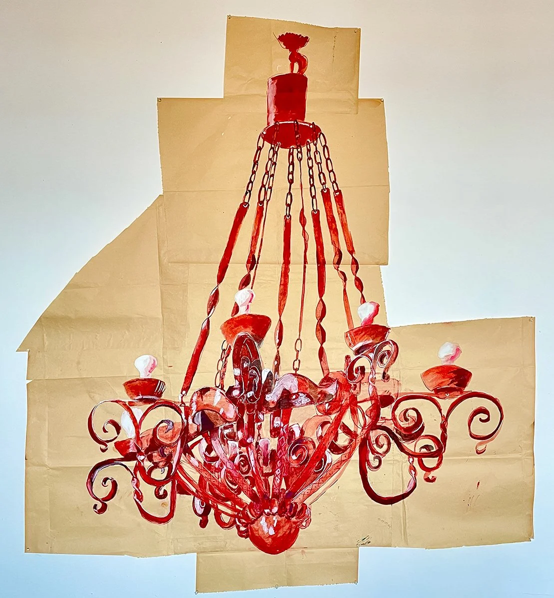 Ink, watercolor, pen on paper, red: 4.5’ x 5’. Blue 5’ x 5’. 2021