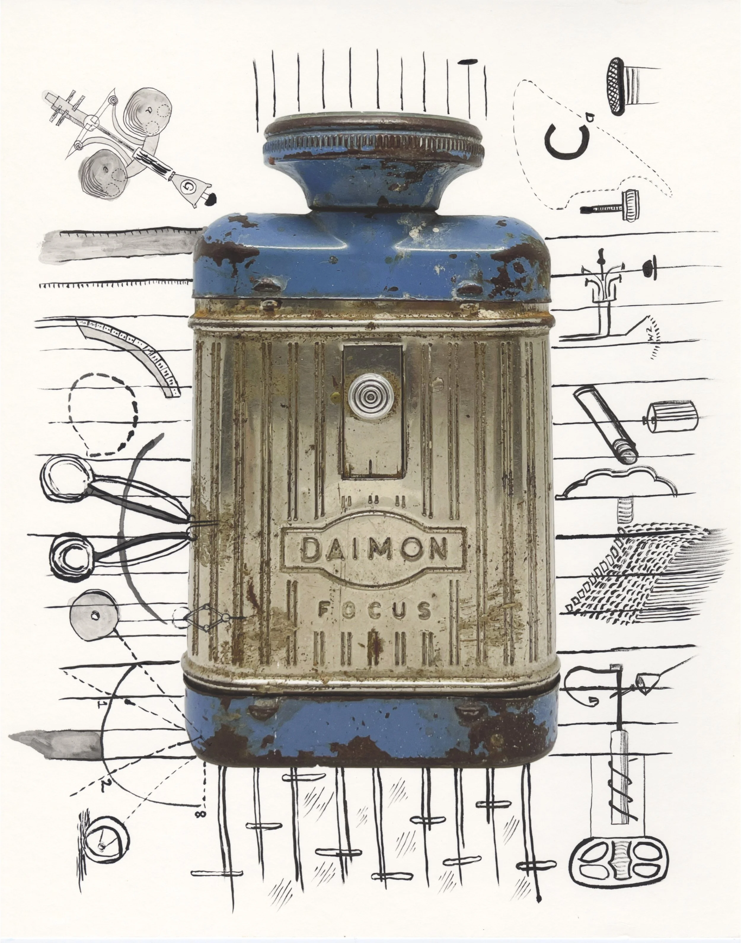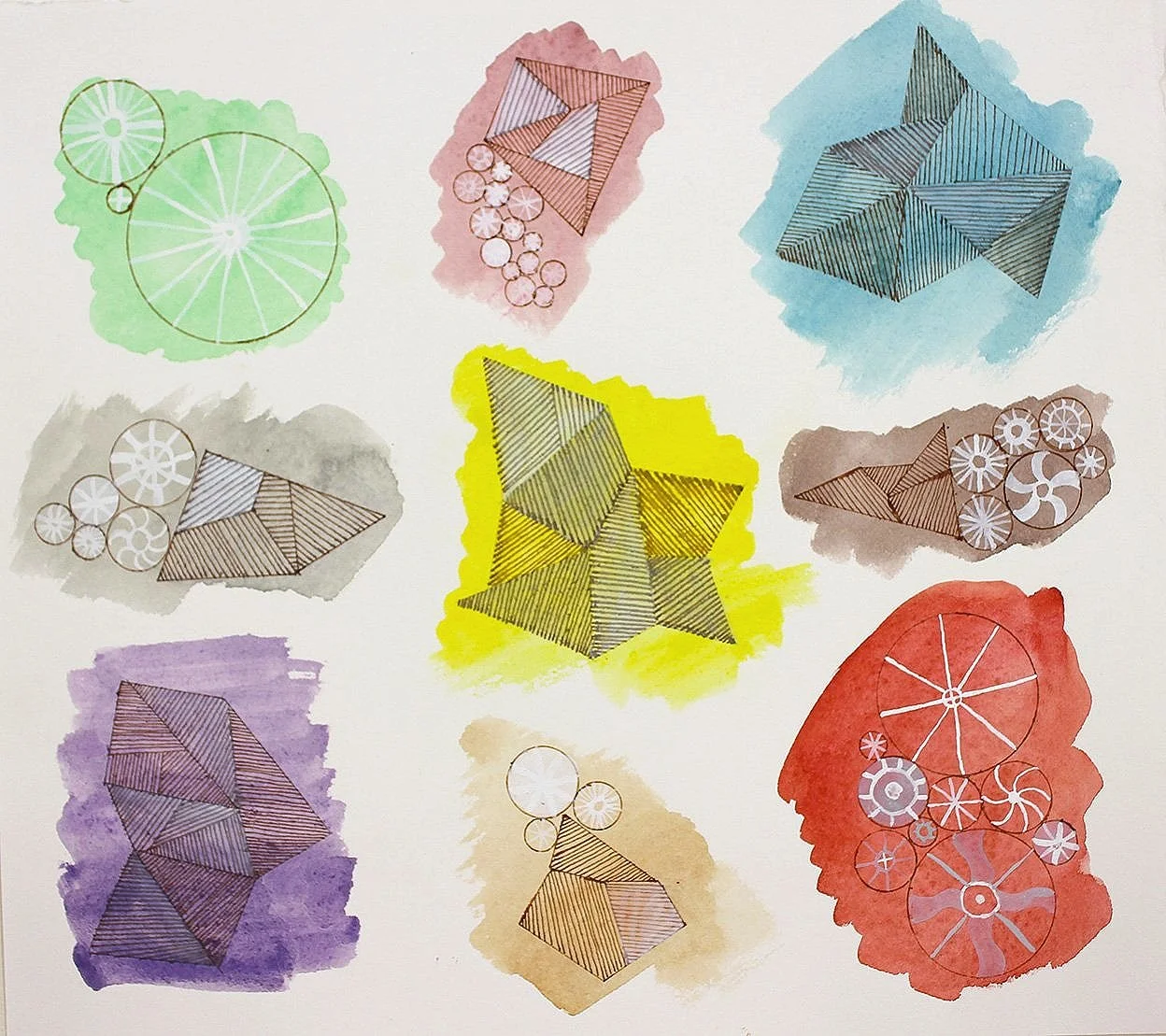 Watercolor, guauche, collage, ink on paper.